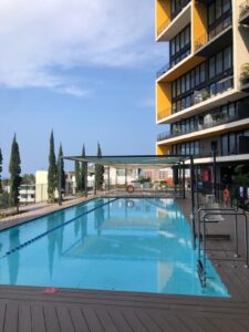 Doorman in the building, swimming pool, gym, residents’ lounge, 10 sqm storage room, two parking spaces, 58 sqm apartment.